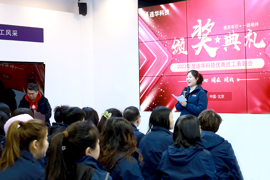 上午9點,年會正式拉開帷幕。首先進行的是優秀員工、團隊及管理者的頒獎儀式。連華科技總經理為獲獎者頒發了榮譽證書和獎品,對他們在過去一年里的辛勤付出和卓越表現給予了高度評價和贊揚。獲獎者們激動地接過獎品,臉上洋溢著喜悅和自豪。觀眾們為他們鼓掌喝彩,向他們致以崇高的敬意。