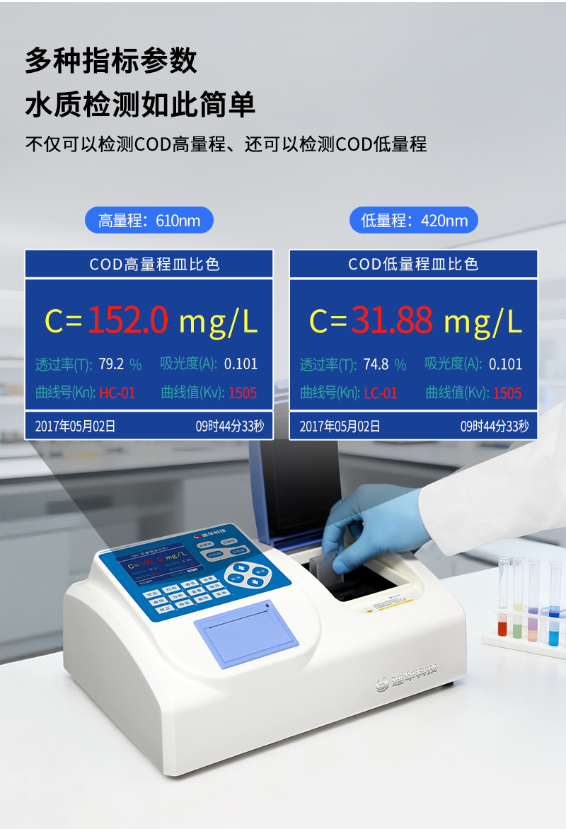 2、測(cè)定COD高量程、COD低量程水樣,還同時(shí)支持皿比色和管比色兩種比色方式;