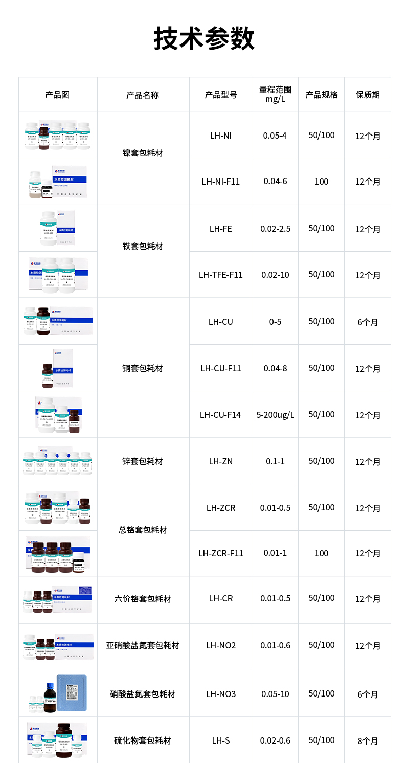 水質污染物液體耗材技術參數: